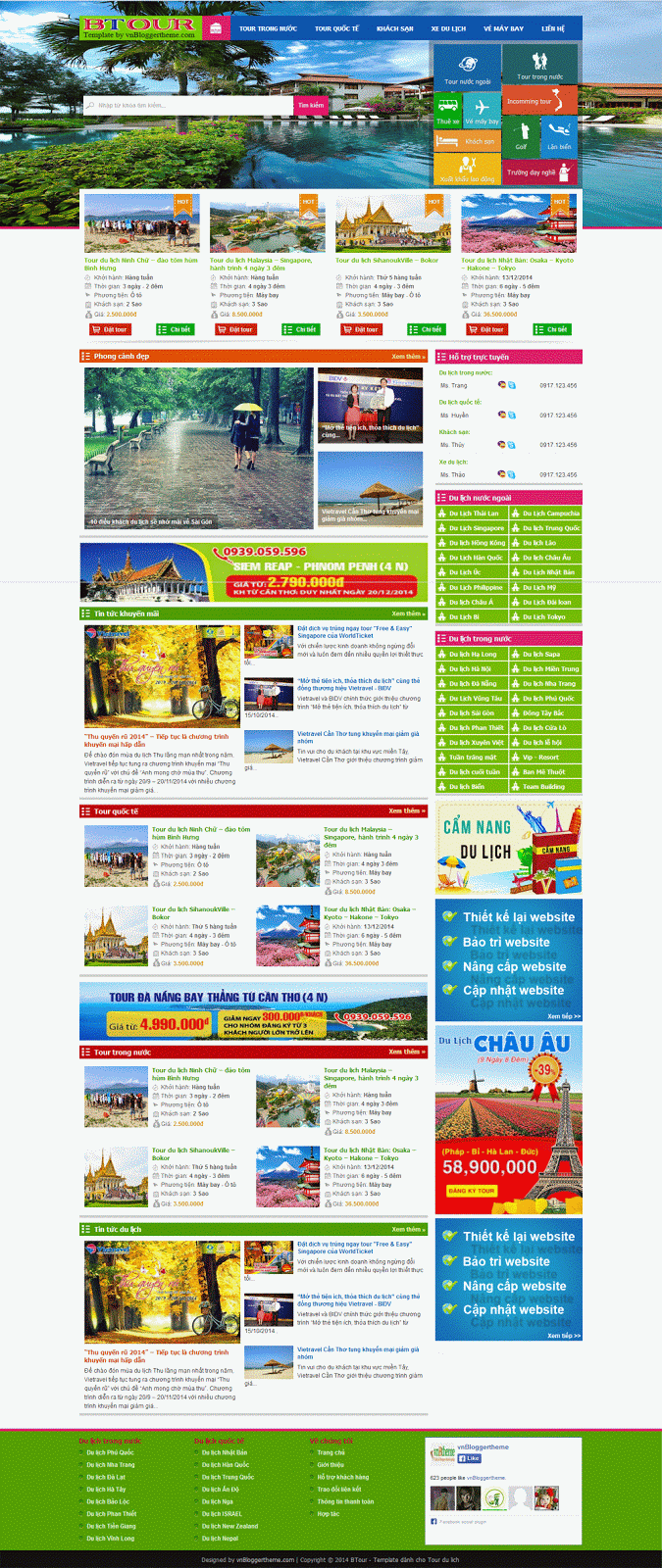 Traidatmui.com – Hôm trước mình đã giới thiệu cùng các bạn 1 giao diện dành cho trang tin du lich đó là mẫu BTravel. Tuy nhiên, đối với BTravel thì chỉ dừng lại ở mức là chia sẻ những tin tức về du lịch, những kinh nghiệm hay những món ăn hữu ích... BTour được nâng cấp hơn là ngoài việc chia sẻ những kinh nghiệm du lịch, những phong cảnh đẹp, nhưng địa điểm hấp dẫn... mà nó còn có thể giúp bạn đăng bán các tour để khách hàng có thể đặt tour ngay trên website của bạn.