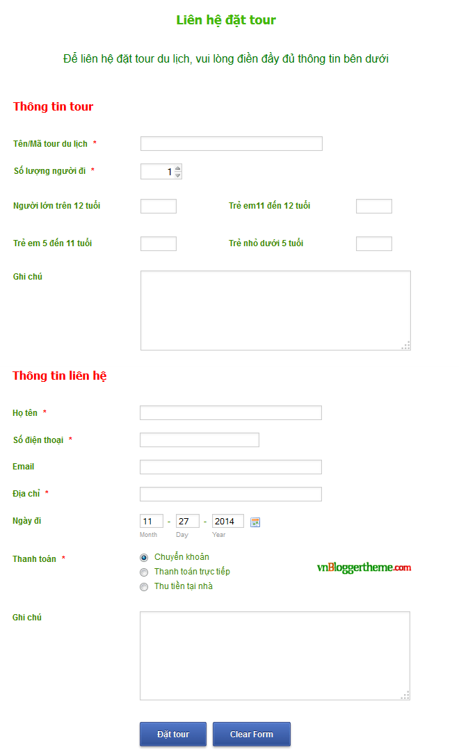 - Có form đặt tour chuyên nghiệp giúp lấy thông tin tour và thông tin khách hàng qua mail